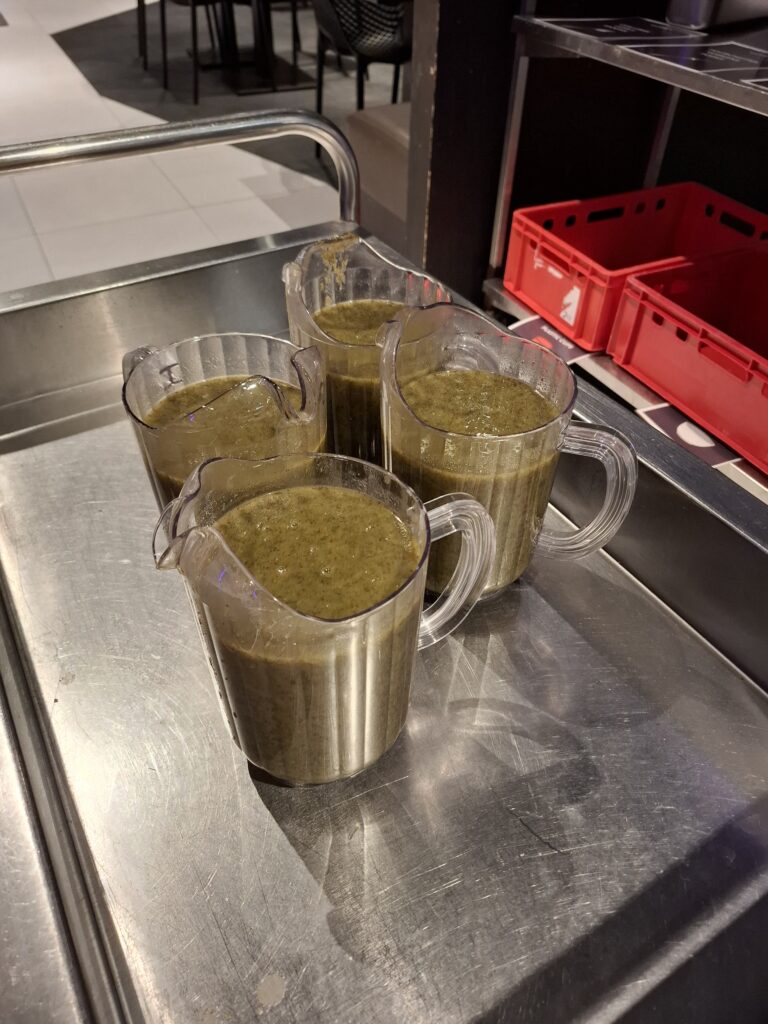 soupe de chou-fleur, hamburger végétarien- haricots et riz, et en dessert ananas !